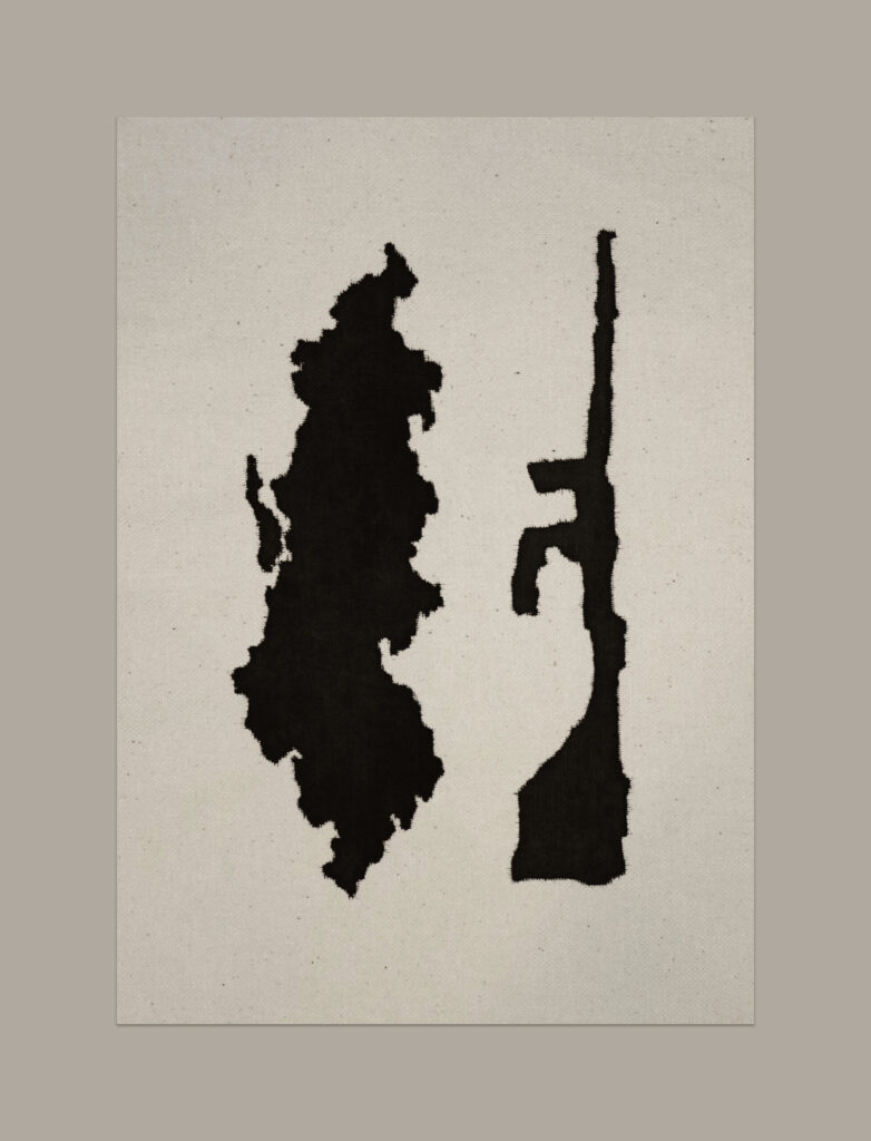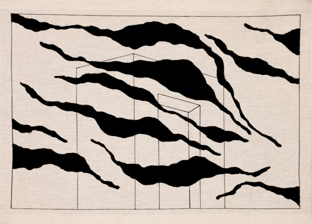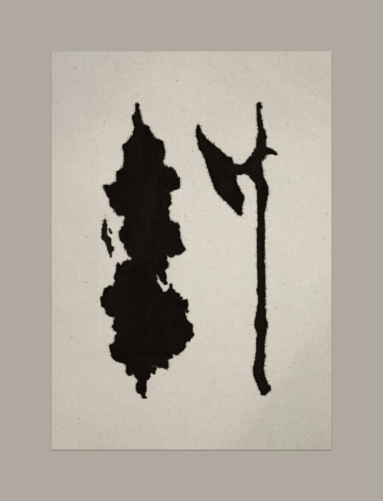 Doubt of Stain drawings, ink and dust on fabric, 45×34 cm each, 2025