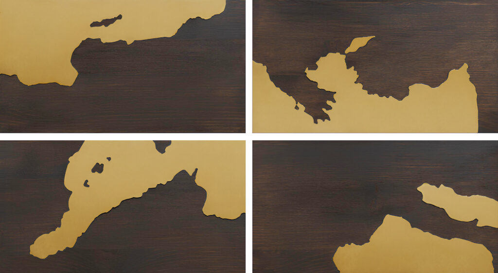 Middle Trace – Margin, wood and brass, 45 x 25cm each